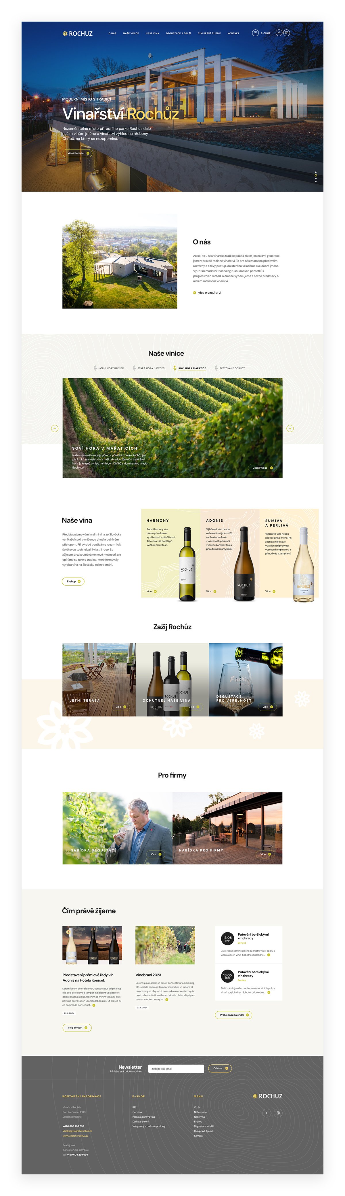 Vinařství Rochuz sídlí na úpatí stejnojmenného parku a skanzenu. Kromě úchvatného výhledu na královské město nabízí i posezení v moderním interiéru a velkou nabídku kvalitních vín. Aby měli zákazníci možnost vychutnat si lahodný mok i doma, pro Vinařství Rochuz jsme navrhli elegantní web i přehledný a funkční e-shop.